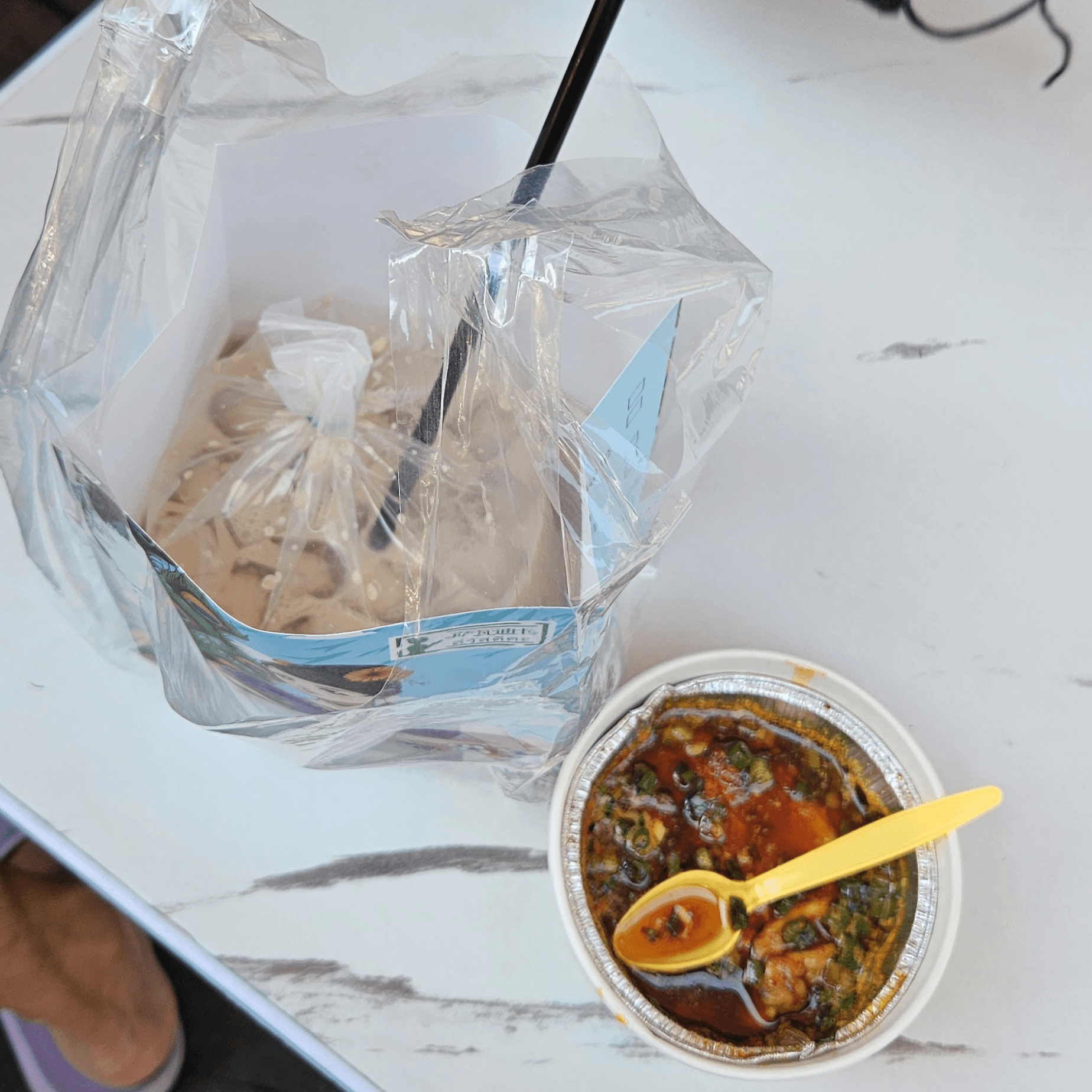 Spicy Pork Brain with Bagged Thai Milk Tea