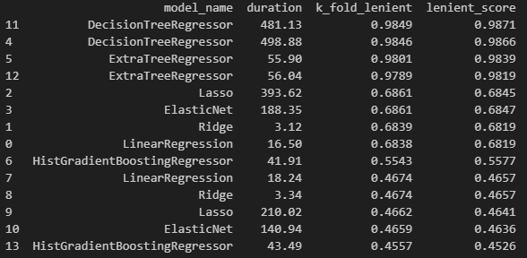 Given the large dataset created using the historical data, I decided to push for supervised learning as the method for predicting near future trends. The goal was to predict the minimum gain achievable within a short future time window in order to provide a lenient bound on the results. After testing a few models, I decided to go with the Extra Tree Regressor as it seemed to have the right balance of training speed and accuracy.